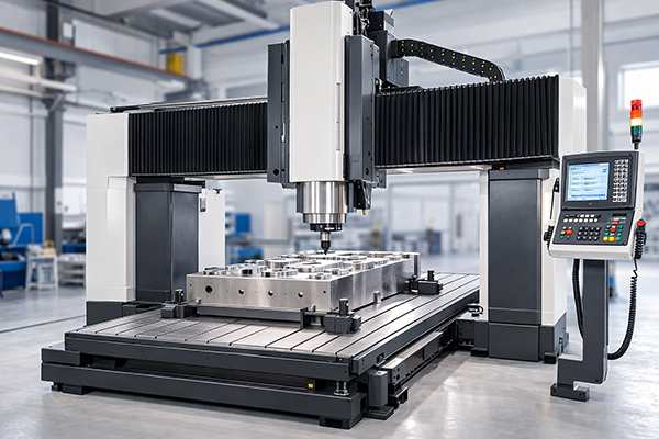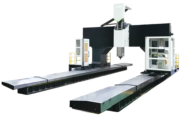This bridge-style structure helps maintain high rigidity and consistent machining accuracy, especially when working with large metal parts.