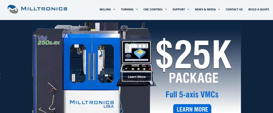 Milltronics is recognized for its in-house CNC control development, including the INSPIRE CNC control platform, and supports industries such as aerospace, automotive, defense, medical, and general precision machining.